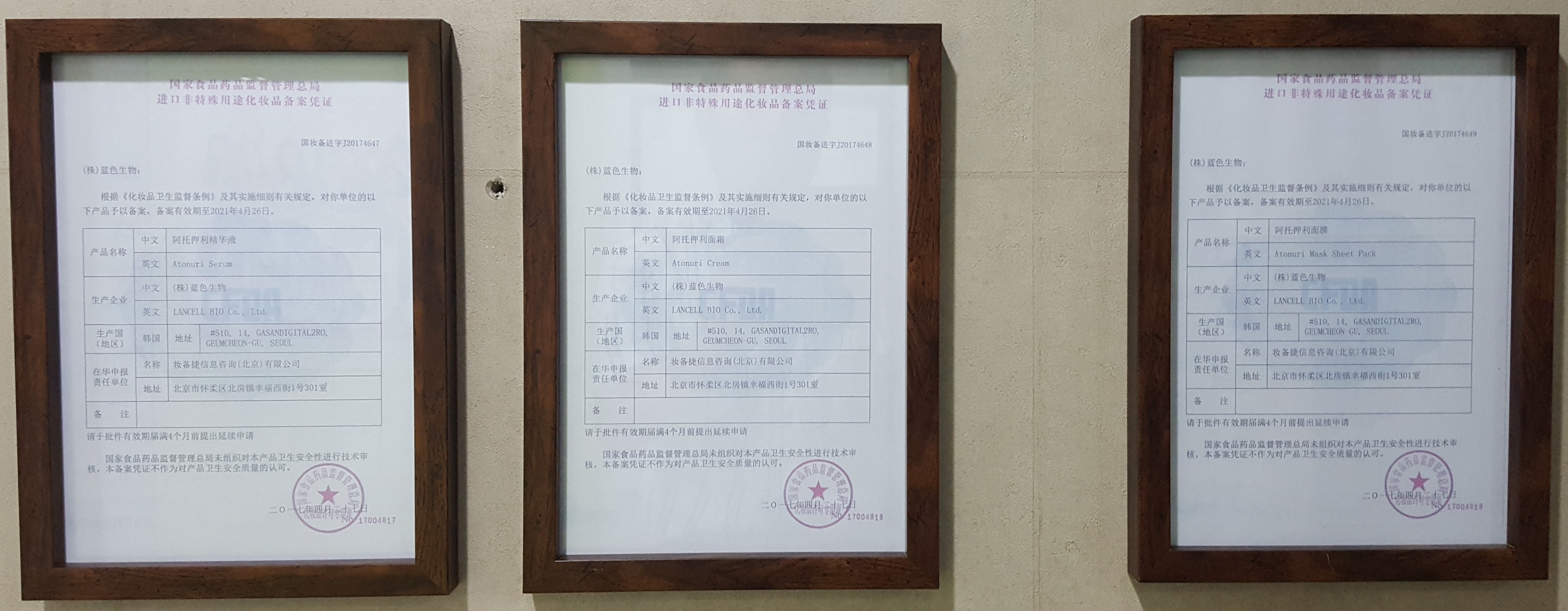 Chinese sanitation permit No.17004819