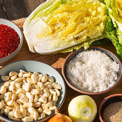 We make Kimchi everyday immediately after ordering only the ingredients carefully selected such as the solar salt of Shinan Do-cho.